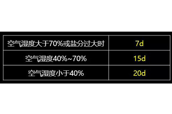 ?。?)穿束后至孔道灌漿完成應(yīng)控制在下列時(shí)間以內(nèi),否則應(yīng)對(duì)預(yù)應(yīng)力筋采取銹措施:
